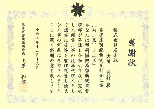 令和7年度留萌建設管理部優秀現場代理人表彰